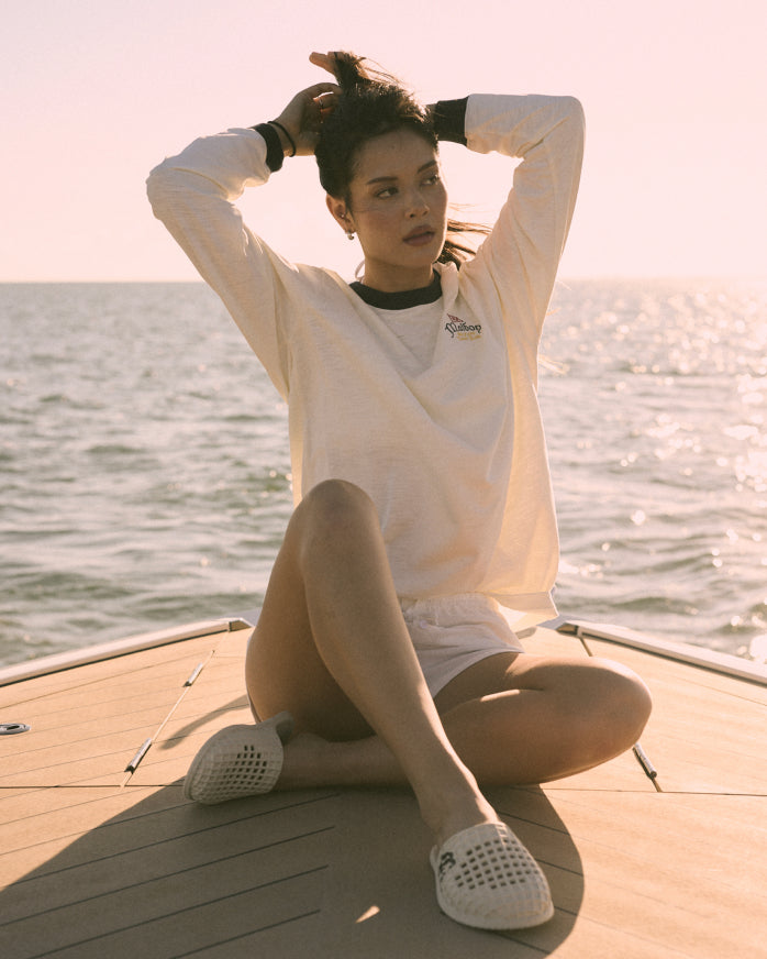 Our brand-new low-profile Rosa features Nitro Foam comfort for ultimate cushioned bounce-back, available in Bone White or Falcon and finished with the classic Malbon M Script logo.