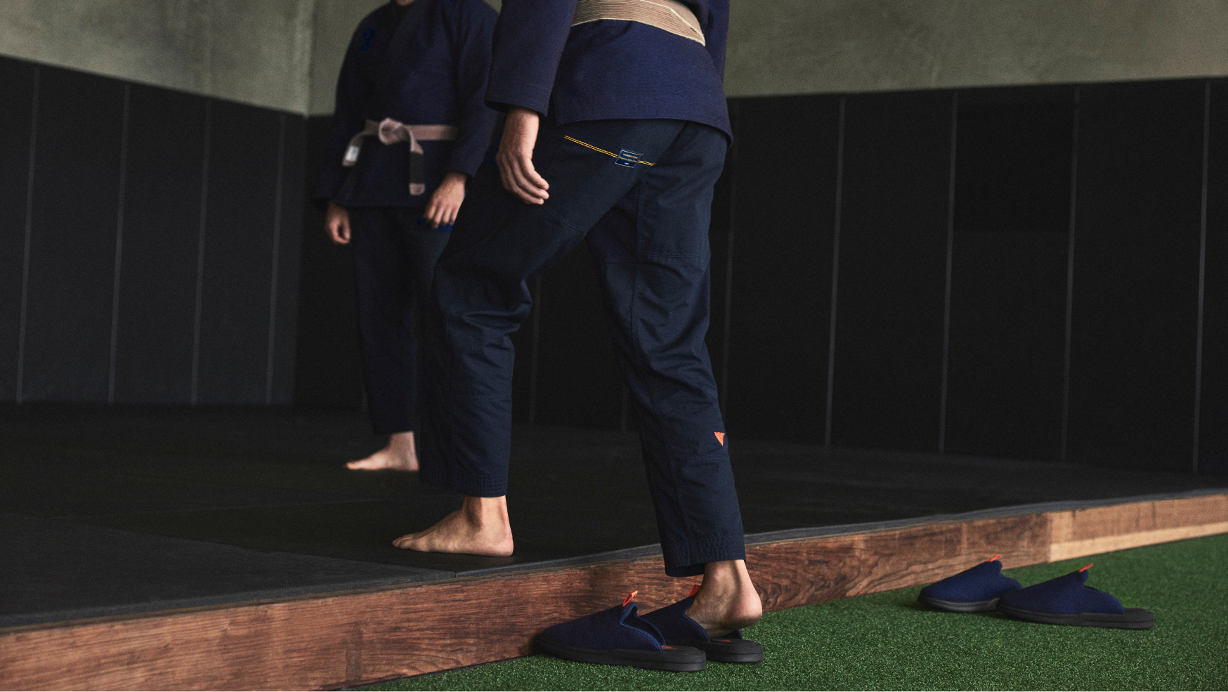 Train in comfort. We partnered with our friends at Vanguard Kimono, the L.A.-based maker of unique jiu-jitsu apparel, for a first-of-its kind collab. Our signature comfort slip-on, with Triple Stack Technology for soft support. Vanguard developed the custom colorway just for us — a two-tone pearl weave of 100% BCI cotton and recycled poly fibers derived from plastic bottles. The Kimono Di Lusso, built for training: a very limited batch of eco-conscious kimonos made from the same material as the Pelli.